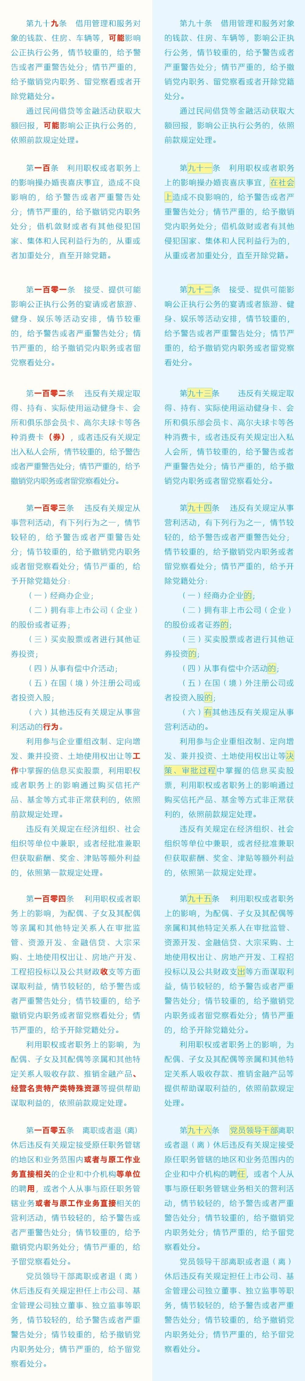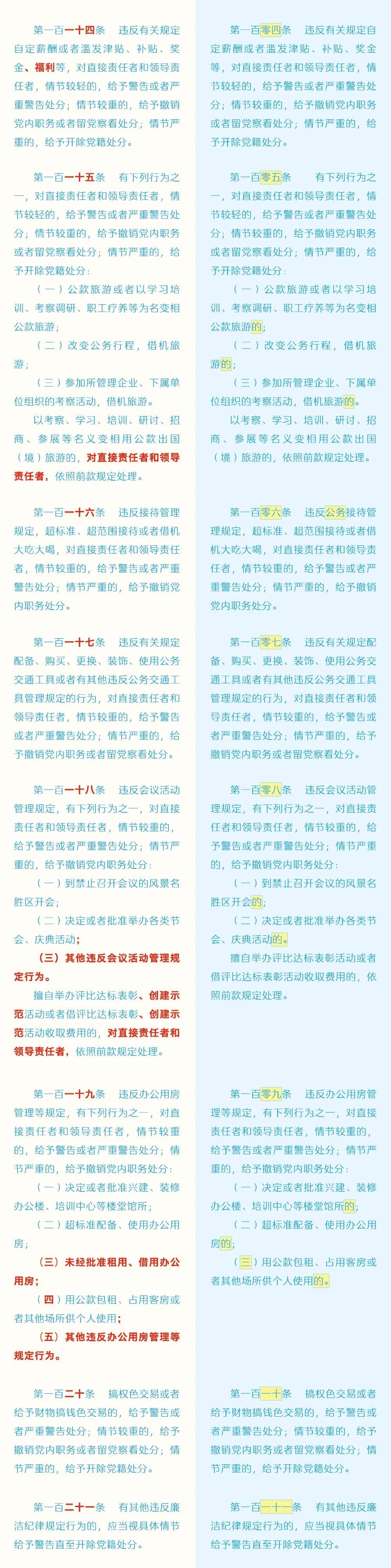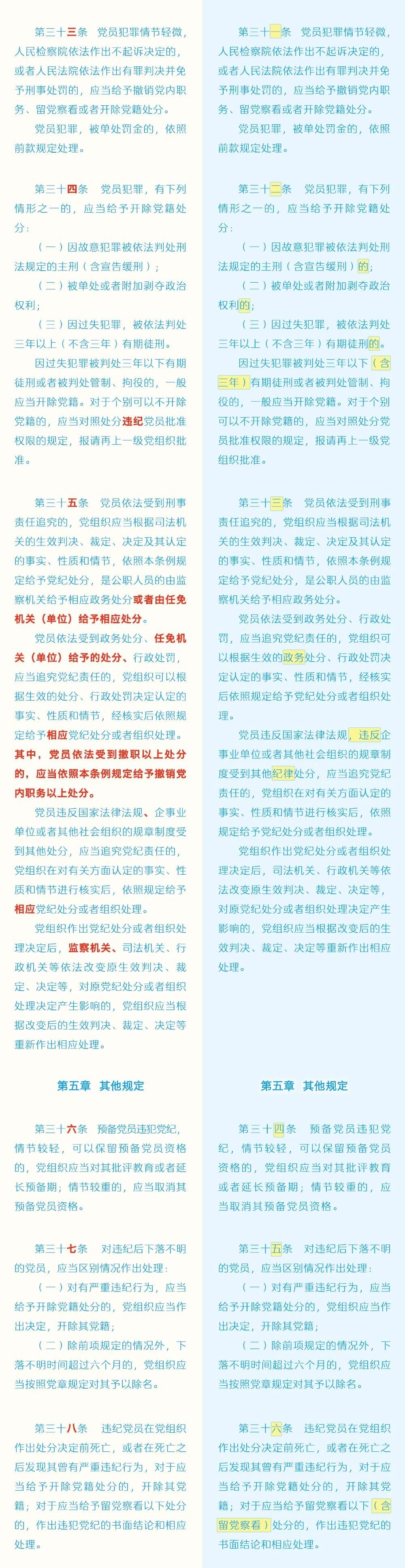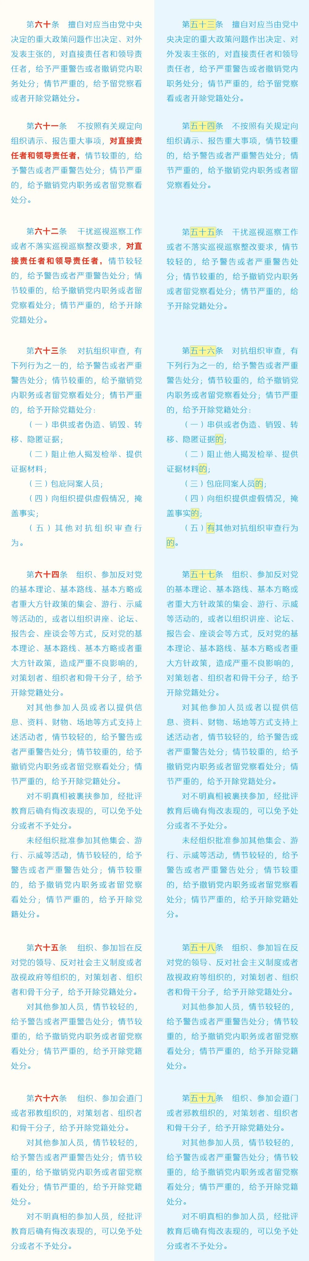 黨紀(jì)學(xué)習(xí)教育 | 《中國(guó)共產(chǎn)黨紀(jì)律處分條例》修訂條文對(duì)照表