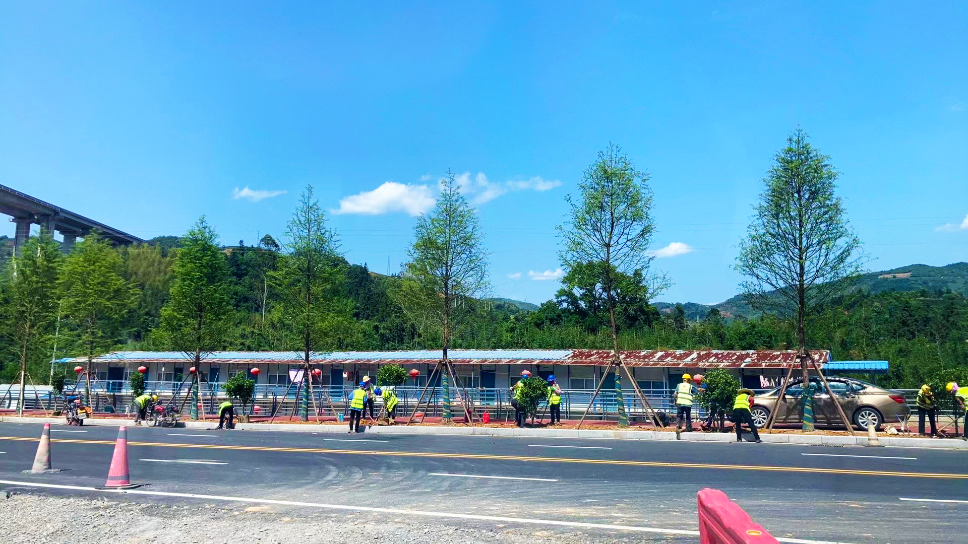 本項(xiàng)目是南靖縣書洋鎮(zhèn)旅游接待中心至云水謠景區(qū)的主要通道?!拔逡弧奔倨?,梅書線項(xiàng)目經(jīng)理部全員堅(jiān)守崗位,實(shí)時(shí)關(guān)注天氣情況,全面加強(qiáng)現(xiàn)場管控,井然有序組織施工人員搶抓工期施工,鉚足干勁推進(jìn)度。114名一線工人緊張有序地進(jìn)行護(hù)欄安裝、綠化種植等作業(yè),挖機(jī)、鏟車、壓路機(jī)、攤鋪機(jī)等13臺(tái)機(jī)械設(shè)備全速運(yùn)轉(zhuǎn),全力推進(jìn)項(xiàng)目各項(xiàng)節(jié)點(diǎn)任務(wù)建設(shè)。