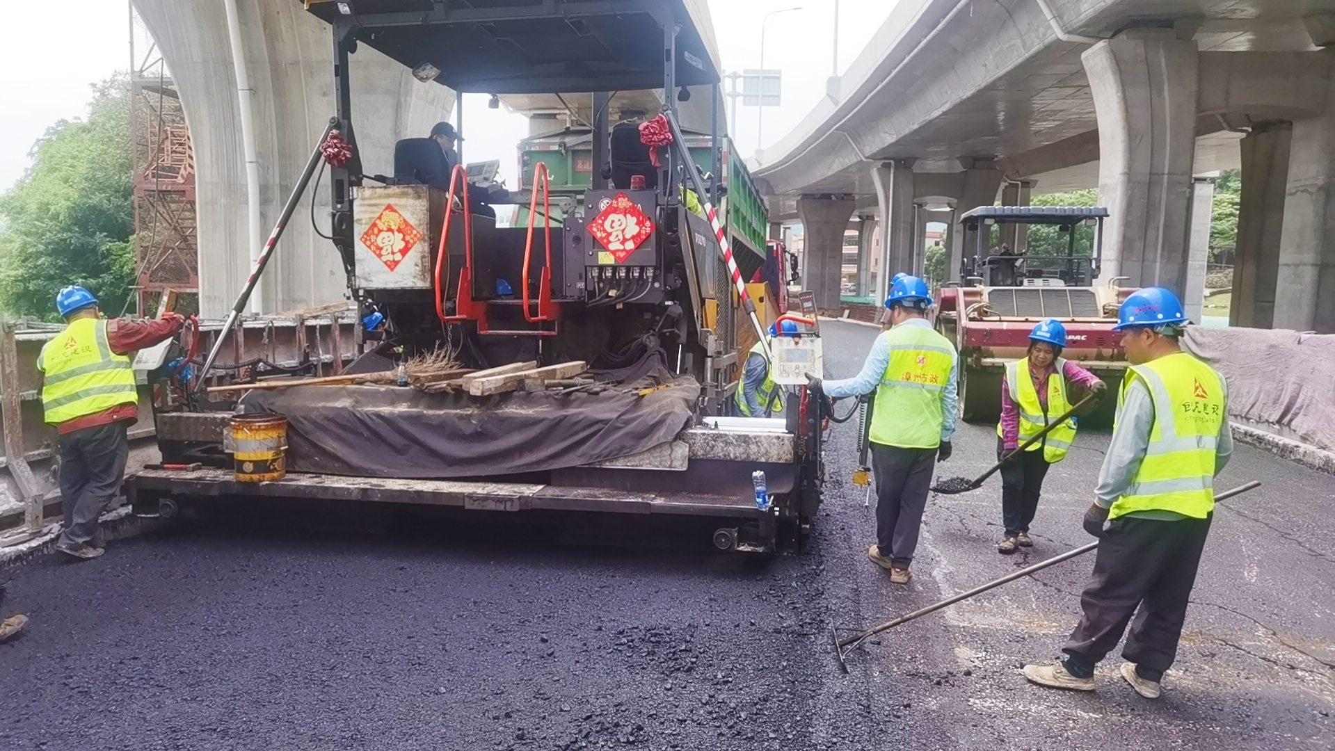 省道219線龍海雩林至翠林段提升改造工程A1標(biāo)段瀝青混凝土路面工程,采用主線高架+地面輔道模式,“五一”假期,兩臺(tái)攤鋪機(jī)同時(shí)作業(yè)、有序攤鋪,現(xiàn)場作業(yè)人員與機(jī)械密切配合,確保攤鋪達(dá)到設(shè)計(jì)要求。目前,項(xiàng)目已完成頂社互通A、B、E匝道和同城大道拼寬段瀝青混凝土路面攤鋪。該階段施工任務(wù)完成后,累計(jì)完成產(chǎn)值1600萬,占瀝青混凝土路面總產(chǎn)值60%,為實(shí)現(xiàn)項(xiàng)目后續(xù)階段性目標(biāo)爭取了寶貴時(shí)間,也為實(shí)現(xiàn)總體目標(biāo)奠定了堅(jiān)實(shí)基礎(chǔ)。