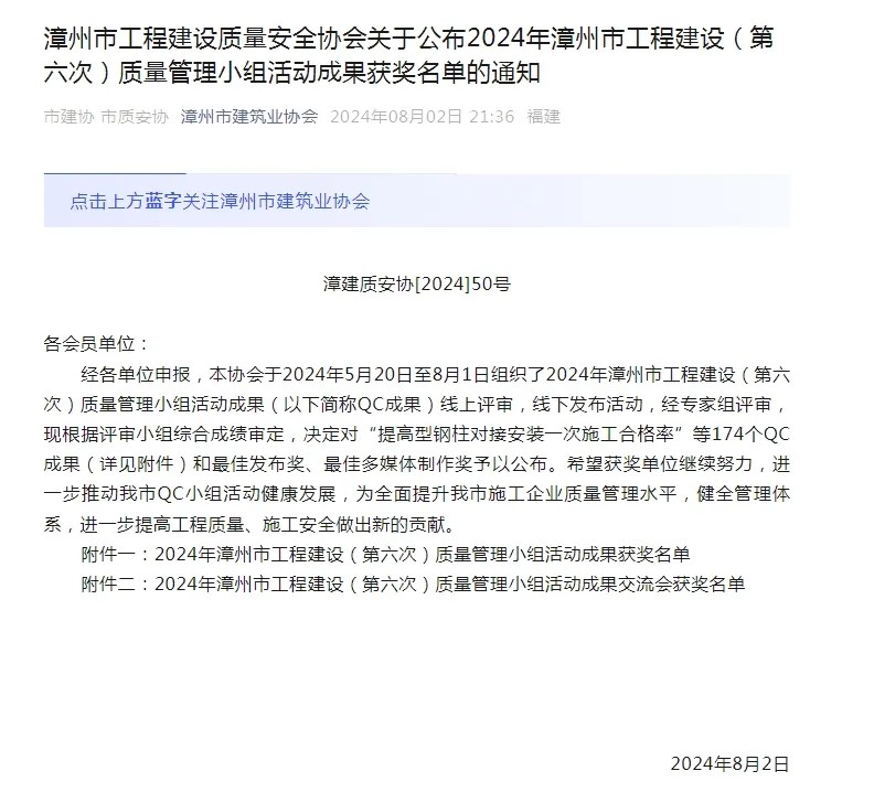 此次獲獎(jiǎng)不僅標(biāo)志著通邦公司在工程質(zhì)量管控領(lǐng)域邁出了堅(jiān)實(shí)的一步,更為公司后續(xù)項(xiàng)目的順利推進(jìn)奠定了堅(jiān)實(shí)基礎(chǔ),同時(shí)為后續(xù)參與水仙杯、閩江杯等更高層次榮譽(yù)獎(jiǎng)項(xiàng)的角逐積累了寶貴經(jīng)驗(yàn)。