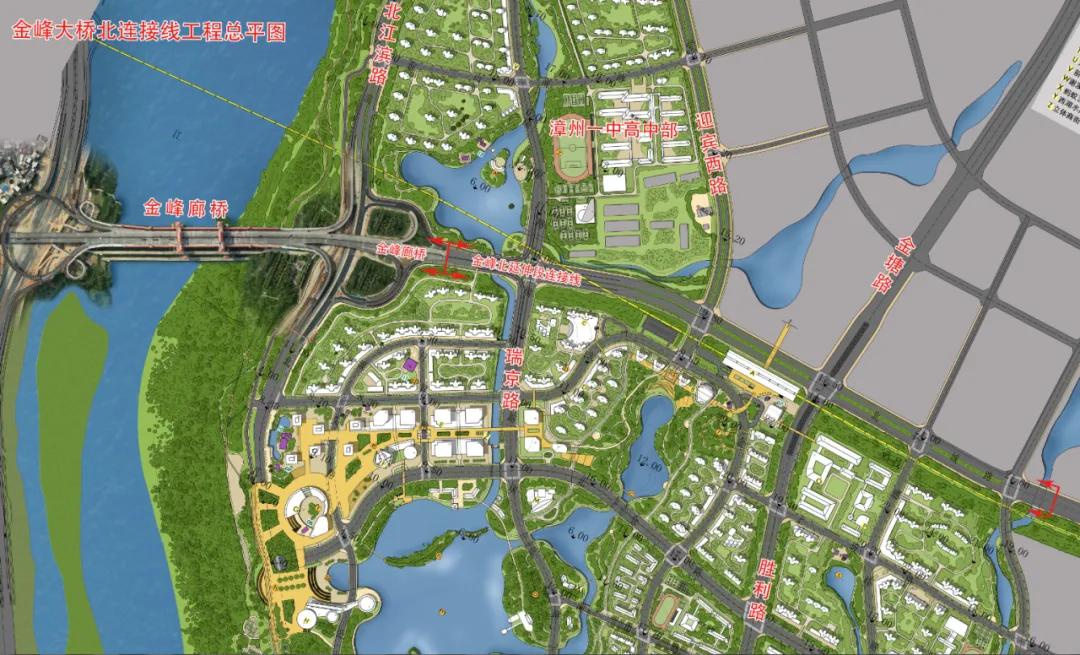 金峰大橋北連接線工程位于漳州市薌城區(qū)西湖生態(tài)園片區(qū),項目起點接金峰大橋北江濱互通鼻端處,終點接北環(huán)城路,全長1.79km。路基寬度60m,設(shè)計速度60km/h,道路等級為城市主干路。項目主要工程內(nèi)容包括道路交通、橋涵、管廊、給水、污水、雨水、照明、電力、通信和綠化等。項目共新建橋梁3座,全線管廊采用雙艙管廊,管廊總長度為1517m。