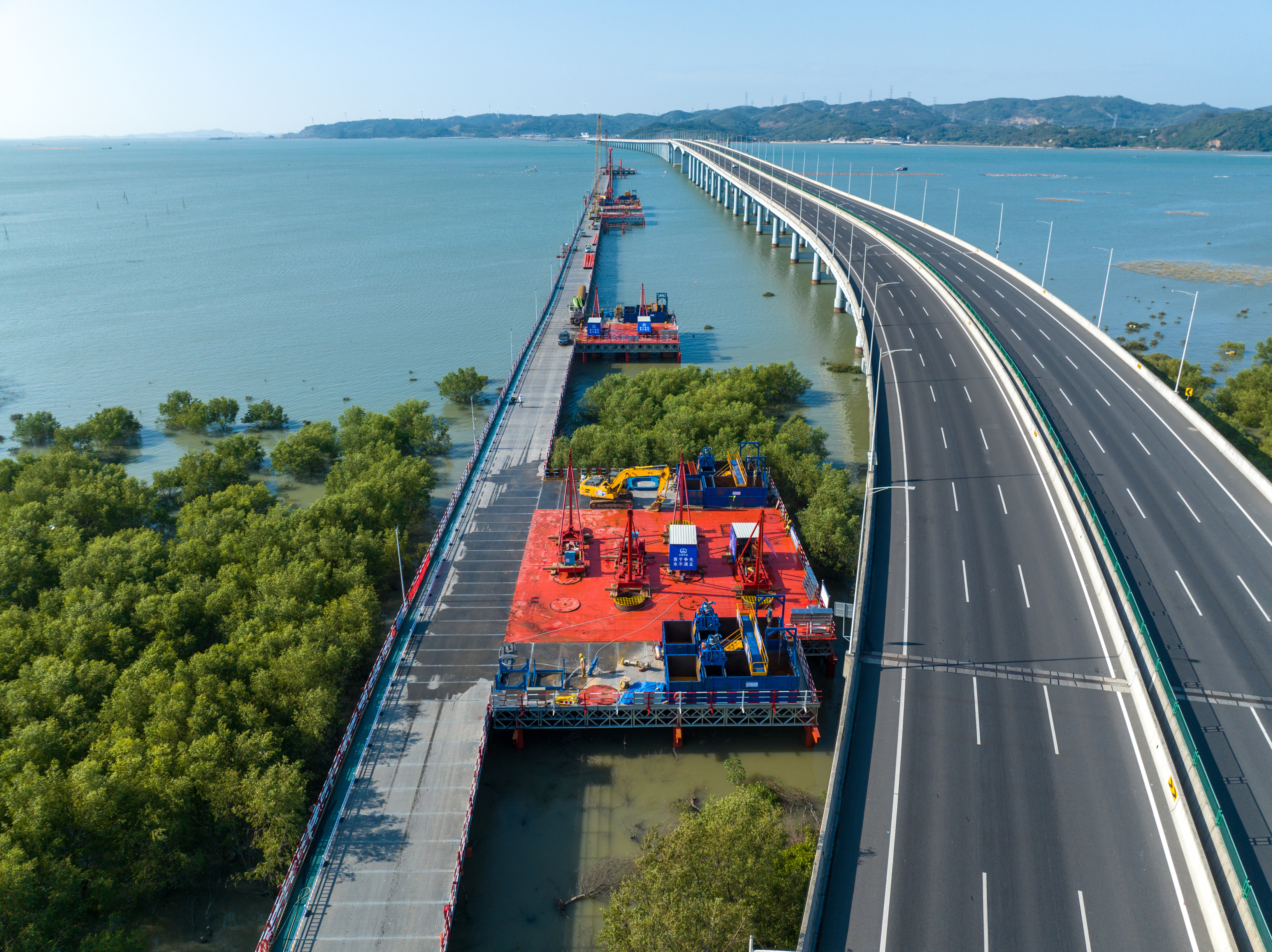 在各方的共同努力下,漳汕高鐵(福建段)3標(biāo)全線已累計完成樁基975根,承臺88個,墩身71個,海上鋼棧橋完成3168米,隧道正在進(jìn)行進(jìn)洞施工前的準(zhǔn)備工作。