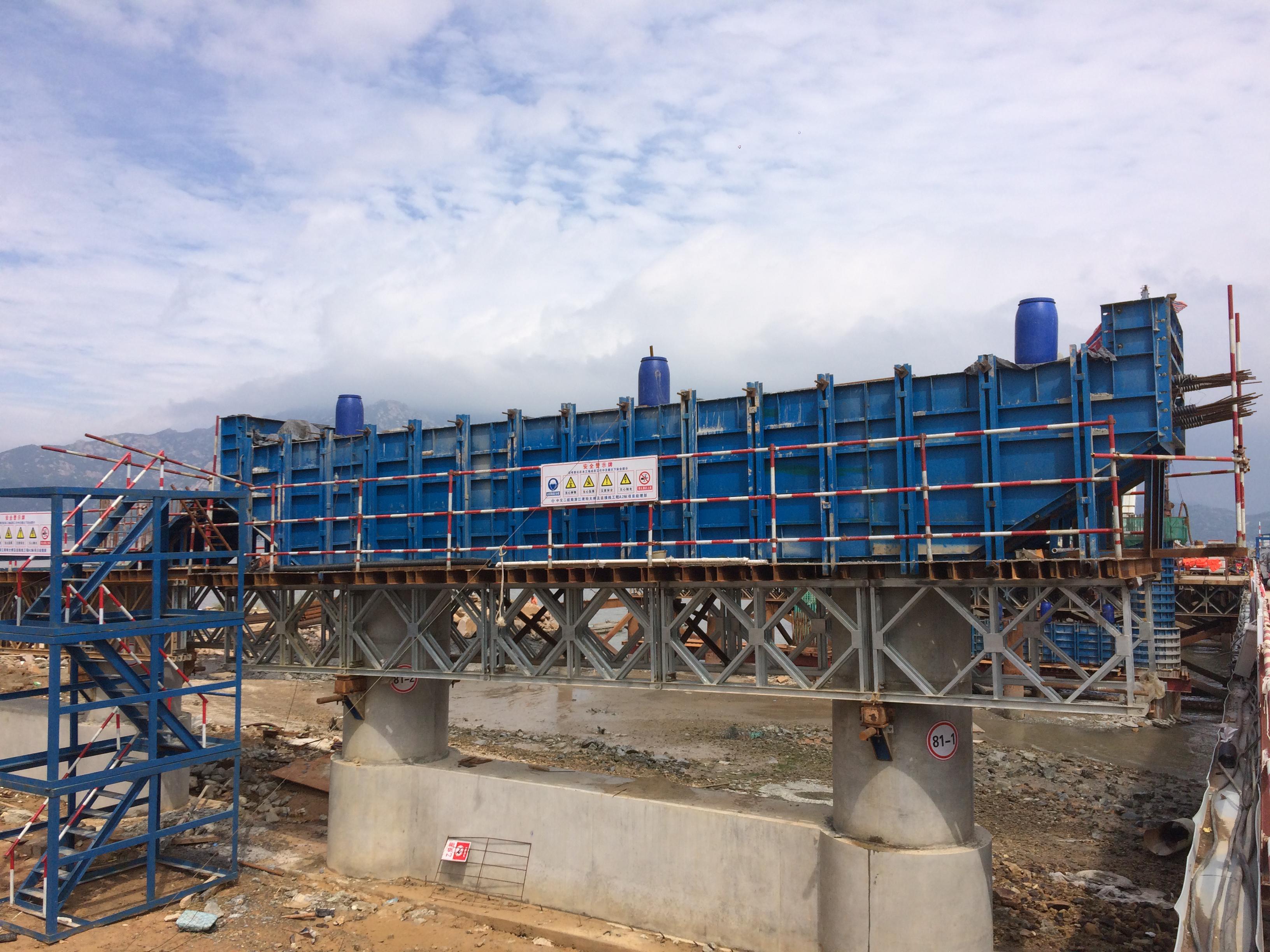 10月18日凌晨6點,漳江灣特大橋南引橋第一個蓋梁澆筑成功。