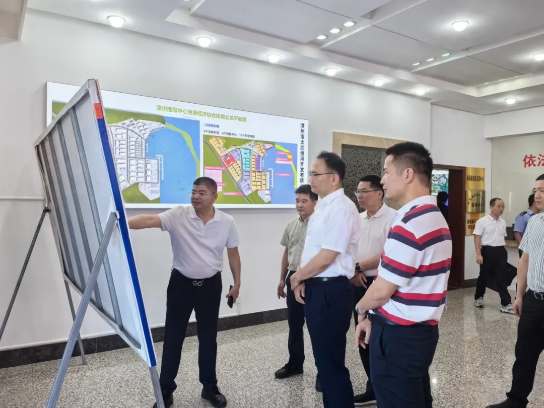 調(diào)研中,市領(lǐng)導(dǎo)分別聽取了漳州交通集團(tuán)關(guān)于港尾中心漁港經(jīng)濟(jì)綜合體、龍海區(qū)深海養(yǎng)殖及海洋三新科技產(chǎn)業(yè)園等項(xiàng)目整體規(guī)劃布局工作的匯報(bào),實(shí)地察看了港尾中心漁港經(jīng)濟(jì)綜合體項(xiàng)目中水產(chǎn)品交易市場(chǎng)、凍庫(kù)、預(yù)制菜產(chǎn)業(yè)園、冷鏈物流等園區(qū)項(xiàng)目的推進(jìn)情況,并提出了項(xiàng)目建設(shè)過程中具有創(chuàng)新性、指導(dǎo)性的意見與建議。
