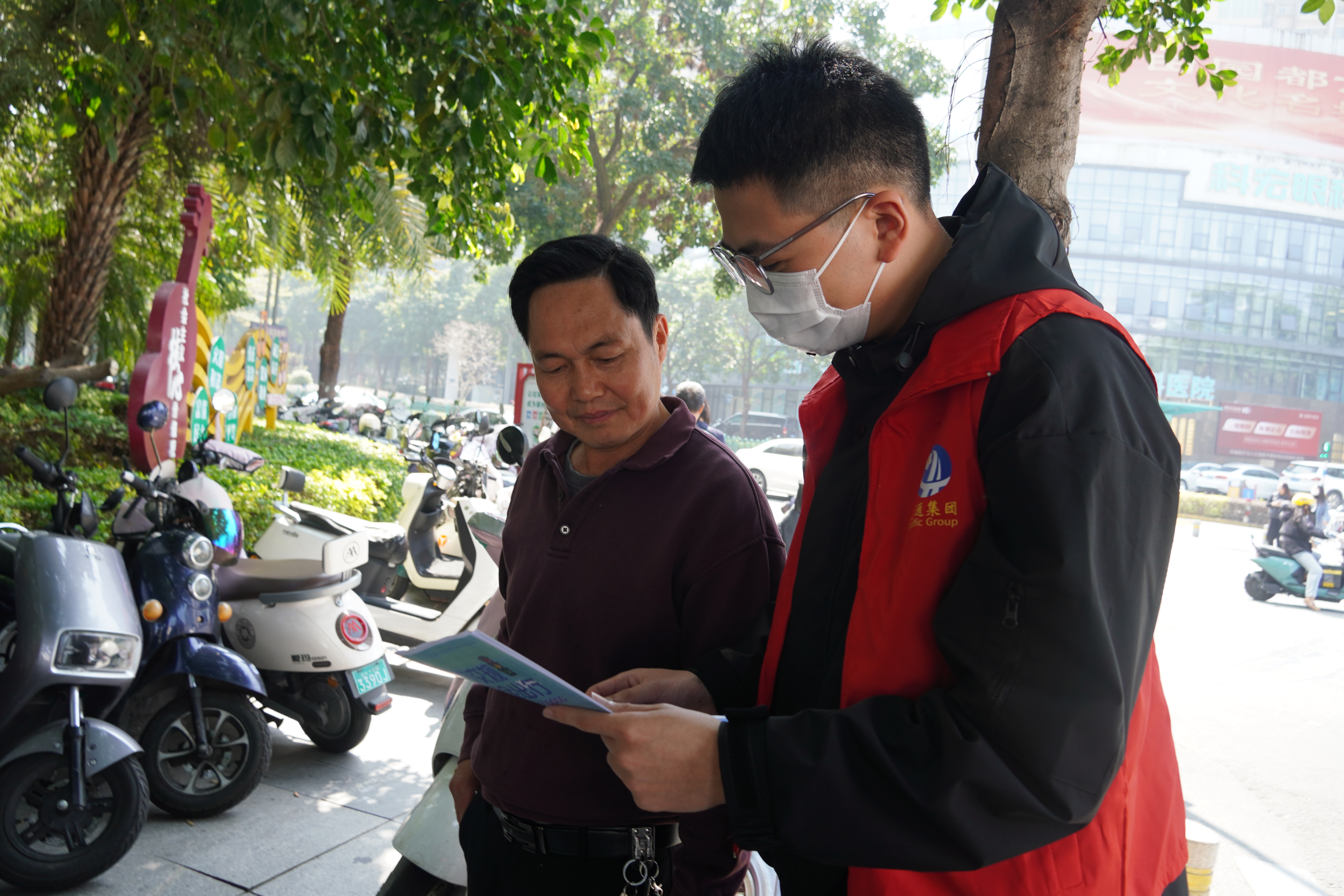 在萬(wàn)達(dá)社區(qū)周邊,志愿者們以發(fā)放宣傳單的方式向群眾講解遵守交通規(guī)則的重要性,提醒大家要牢固樹(shù)立交通安全意識(shí)。