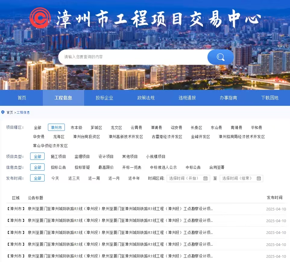 4月10日,由建設(shè)單位漳州市鐵路投資開(kāi)發(fā)有限公司主導(dǎo)的泉州至廈門(mén)至漳州城際鐵路R1線(漳州段)項(xiàng)目迎來(lái)關(guān)鍵節(jié)點(diǎn)——第二輪招標(biāo)公告正式發(fā)布,標(biāo)志著該項(xiàng)目進(jìn)入全面深化設(shè)計(jì)與實(shí)施階段。此次招標(biāo)涵蓋五大標(biāo)段,涉及停車(chē)場(chǎng)、應(yīng)急指揮中心、變電設(shè)施等核心工程,進(jìn)一步推動(dòng)項(xiàng)目高效落地。